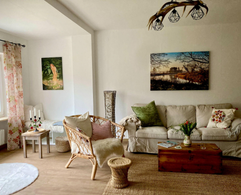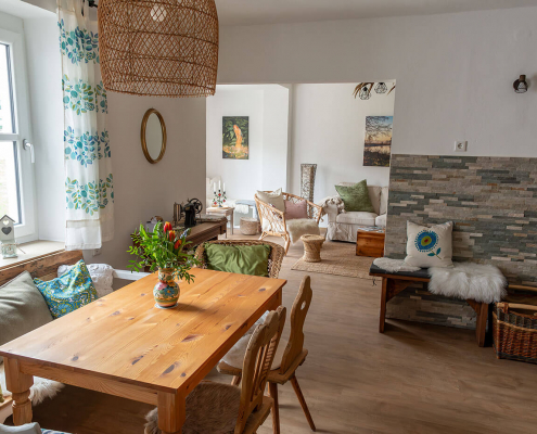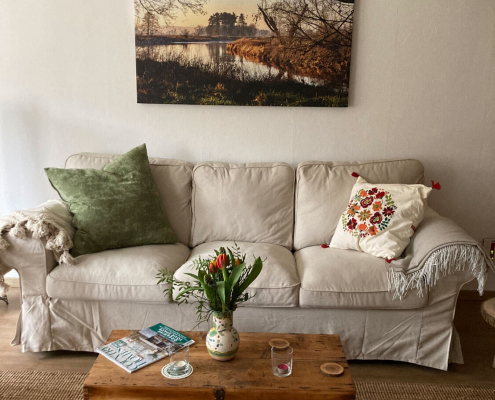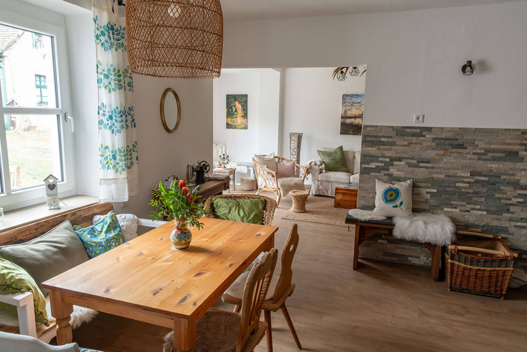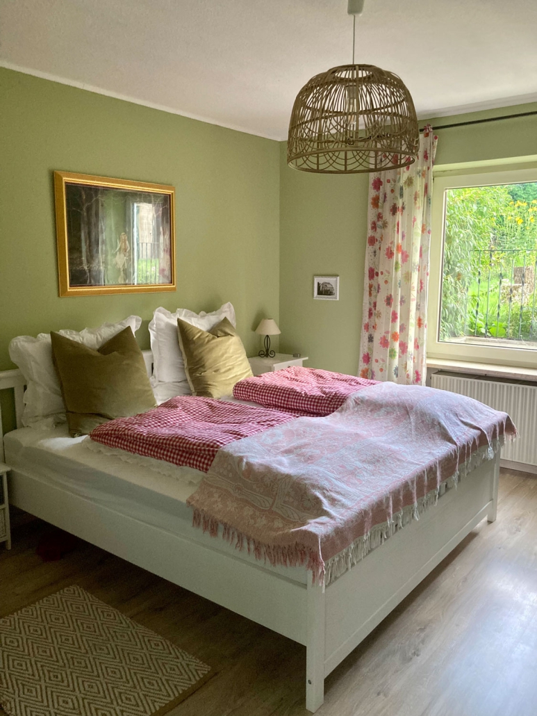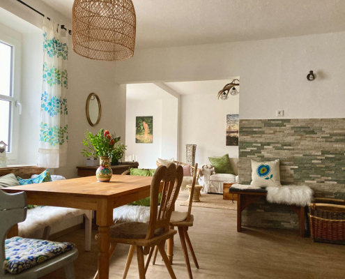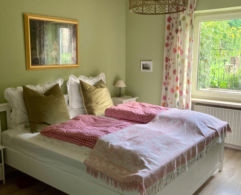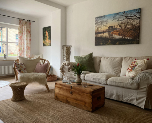 Nur drei Minuten Fußweg vom Fluss sowie vom Stadtzentrum entfernt wartet in einer ruhigen Stichstraße in einem 100 Jahre alten Haus eine liebevoll renovierte, romantische Erdgeschosswohnung auf ihre Gäste. Das etwa 70 qm große Domizil ist ideal für Paare oder eine Familie mit einem Baby/Kleinkind: Es gibt ein 1,80 breites Doppelbett für „die Großen“ und ein Kinderreisebettchen für ein Kind bis zu 3 Jahren, das man im Wohnzimmer oder in der Stube platzieren kann.