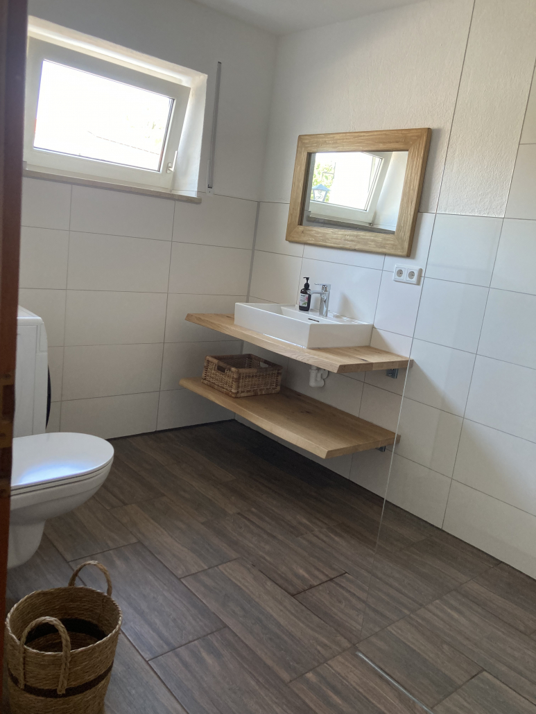 In der Wohnung steht Ihnen eine Waschmaschine zur Verfügung. Die linke Garage vor dem Haus gehört ebenfalls zur Wohnung, der Eingang zur Wohnung erfolgt separat über den Garten.
